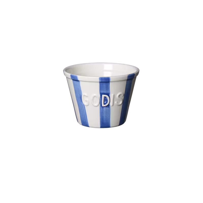 Godisskål blå randig 225 kr Godisskål blå med vita ränder och vit text I lager. Lägg i varukorgen Dela Artikelnummer: 4281 Leverantör: BRUKA DESIGN Information Recensioner Godisskål blå med vita ränder och vit text
