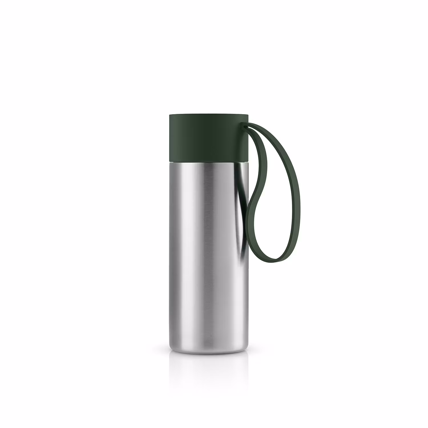 Den praktiska termosmuggen To Go Cup kan tas med överallt. Locket är lätt att öppna och stänga i farten tack vare klickfunktionen som enkelt kan hanteras med en hand. Fyll To Go Cup med kaffe eller någon annan dryck – den håller värmen eller kylan perfekt tack vare dubbla väggar och vakuumeffekt. Den praktiska bärremmen i silikon gör det lätt att ta med flaskan så att man alltid har något att dricka inom räckhåll.