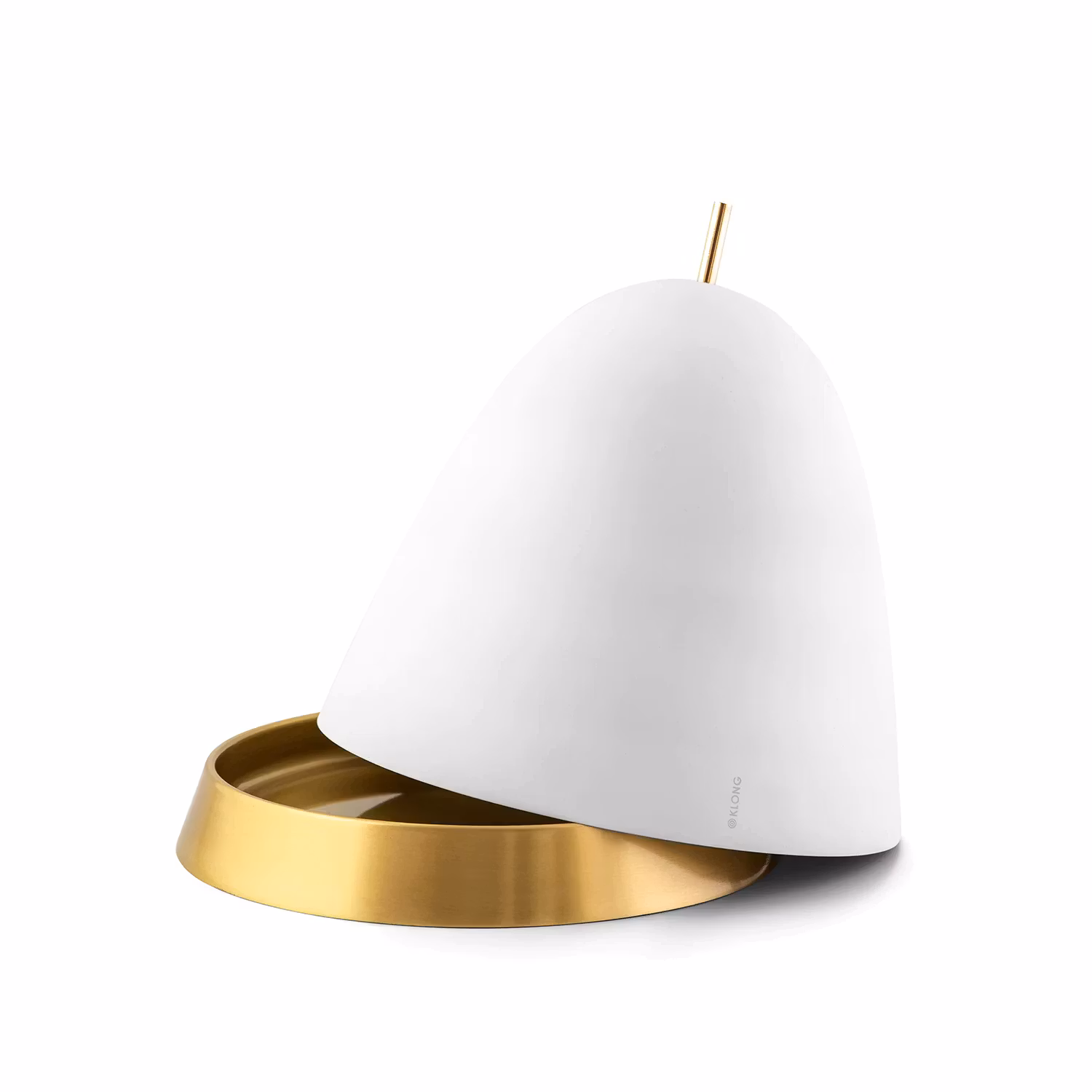 Gömma tillverkas i lackerad metall och har ett tillhörande fat i mässing. Det medföljer en dekorativ mässingsdetalj som levereras omonterat men enkelt skruvas på för hand av kunden.