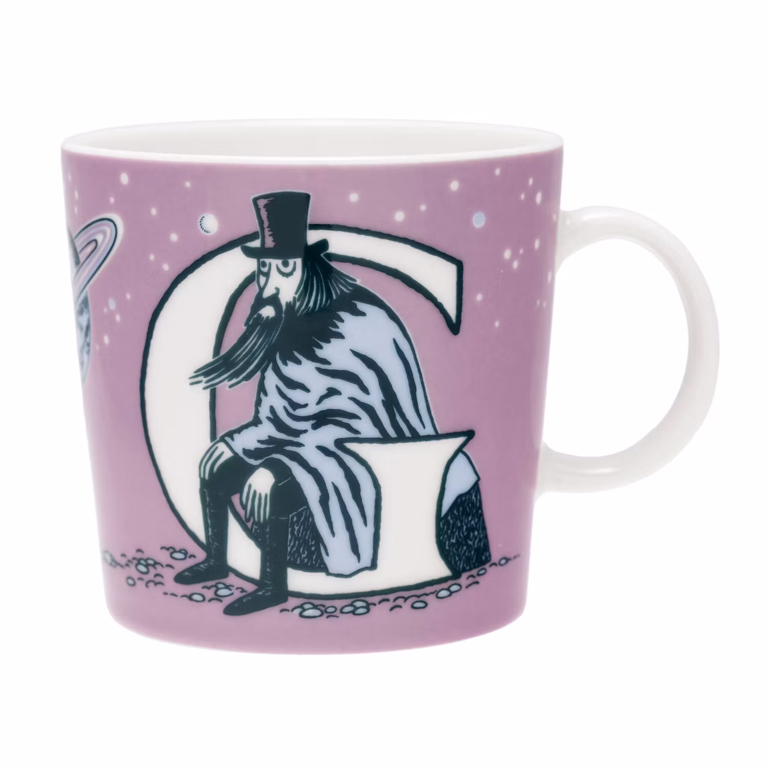 Moomin by Arabia presenterade sin alfabetskollektion under hösten 2022 och är framtagen i samarbete med Från A till Ö med Mumin – ett Mumininitiativ för att sprida läs- och skrivglädje bland barn, ungdomar och vuxna. Den nya större muggen är dessutom perfekt för alla som vill avnjuta sitt te, kaffe eller varför inte sin soppa eller efterrätt i en stor mugg.