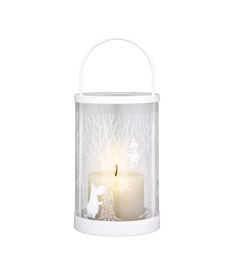 Lyktan har en robust metallram och en cylinderformad glasdel.