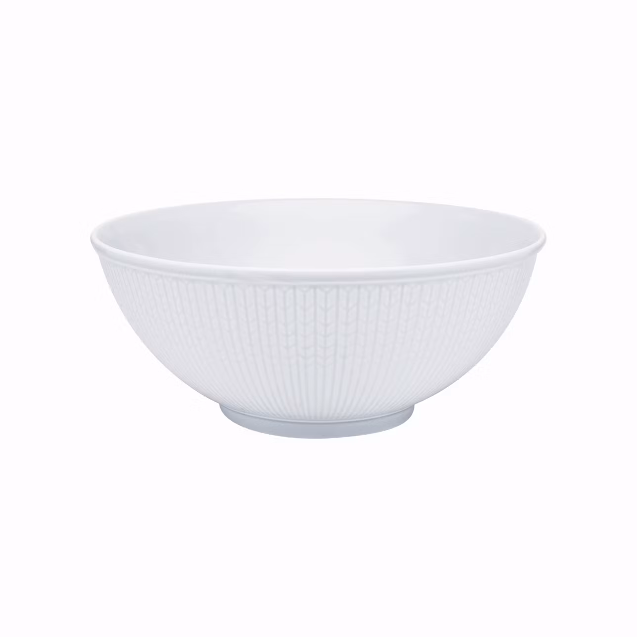 Denna snövita serveringsskål (1,7 l) är det eleganta och klassiska valet för servering av maträtter på vid matbordet. Den matchar alla andra delar och kulörer. Mönstret är inspirerat av graciöst vajande veteax och bidrar med harmoni och traditioner på middagsbordet. Den snövita kulören skapar oändliga kombinationsalternativ.
